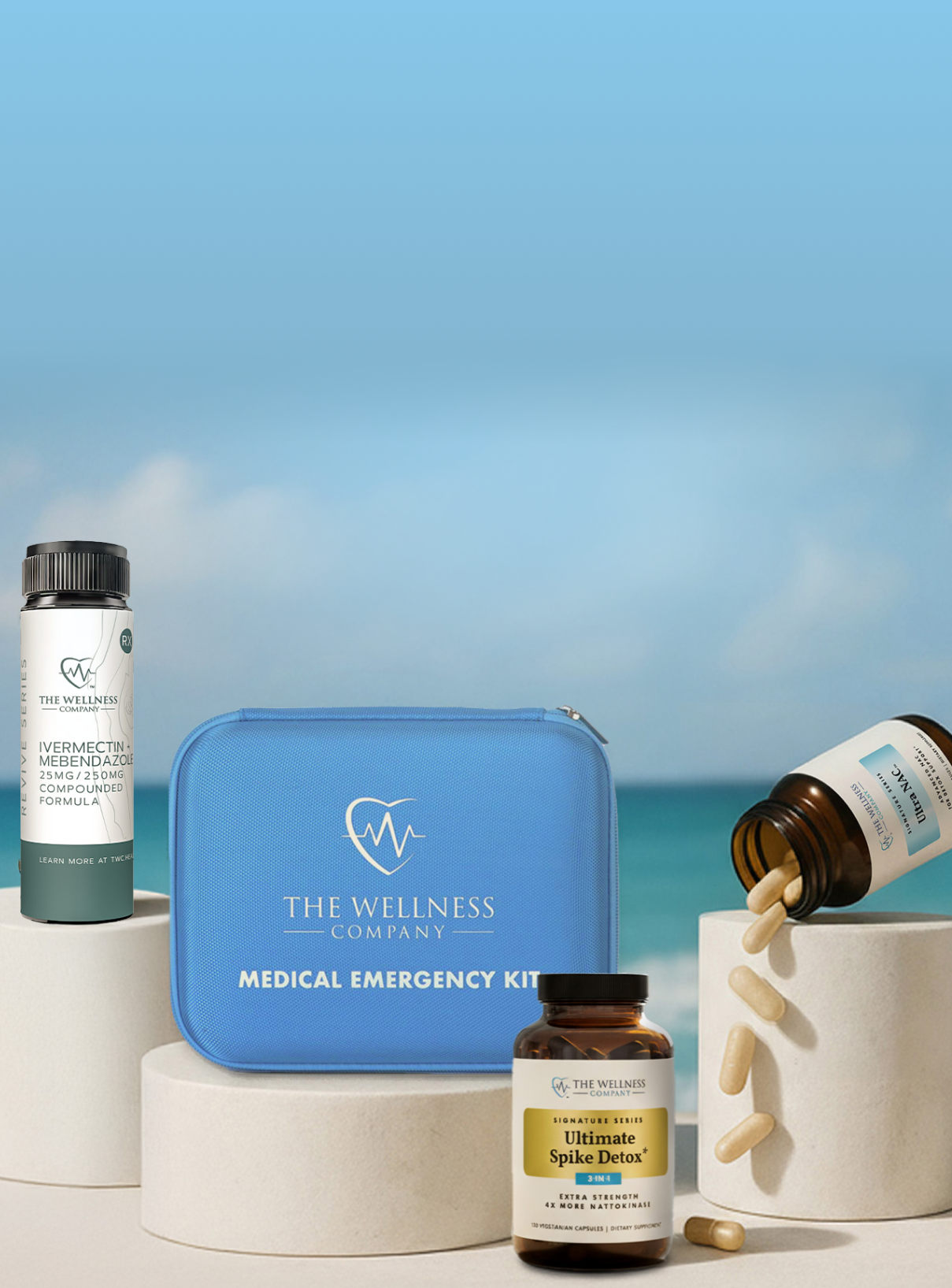 All products offered through this webpage are by prescription only. You must consult with a The Wellness Company provider in order to receive any of the prescriptions contained in the emergency kit. We strongly advise you to consult with a licensed healthcare provider before using any prescription medication obtained through this website. Your healthcare provider is best positioned to evaluate your specific health condition, provide a proper diagnosis, and determine the most appropriate treatment options for your needs. The prescription medications available on this website are intended for emergency situations where immediate medical attention is not accessible. They should not be used as a substitute for regular medical care or consultation with a qualified healthcare professional. Please note that your kit may take 1-2 weeks to arrive, with delivery times varying based on your scheduled provider consultation date.